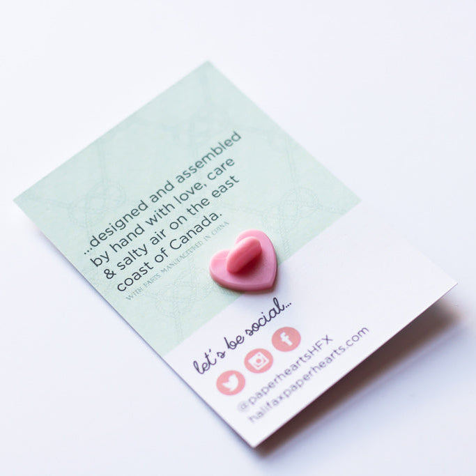 - Comes with heart-shaped rubber pin-back in Paper Hearts™ Pink!